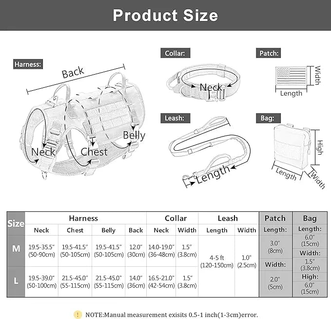 - Tactical Harness: Features MOLLE webbing for customizable gear attachment, ensuring your dog is ready for any mission. Includes pouches for carrying essentials.